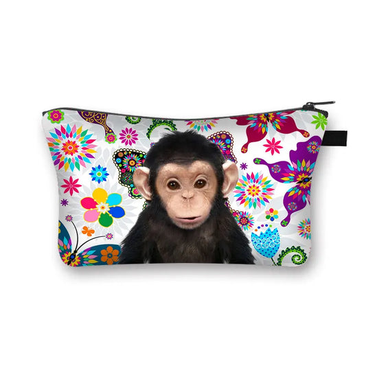Cute Elephant & Koala Cosmetic Bag – Travel Makeup Case for Women, Zebra Print Beauty Pouch, Lipstick Holder, Perfect Gift